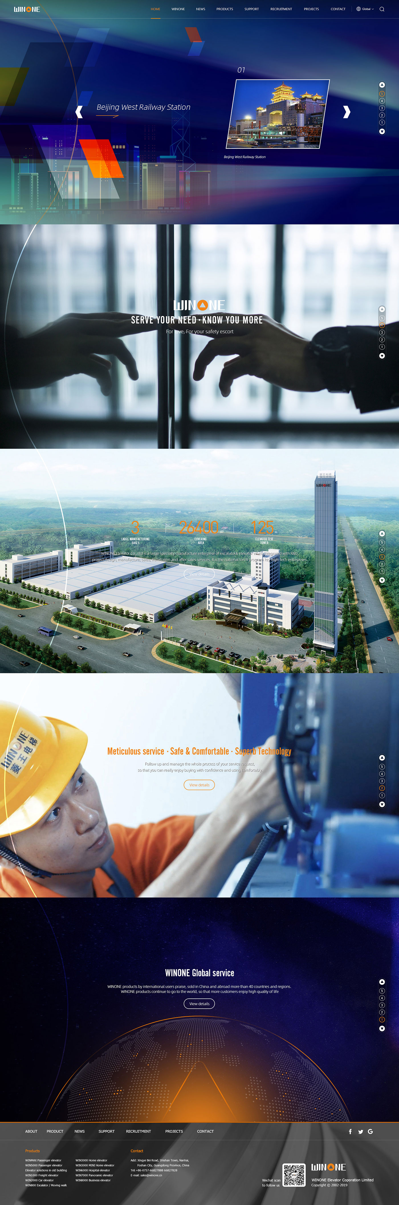 WINONE Elevator Co., Ltd is a large specialty manufacture enterprise of escalator& elevator which integrated with R&D, project design, manufacture, sales, installation and after sales services.